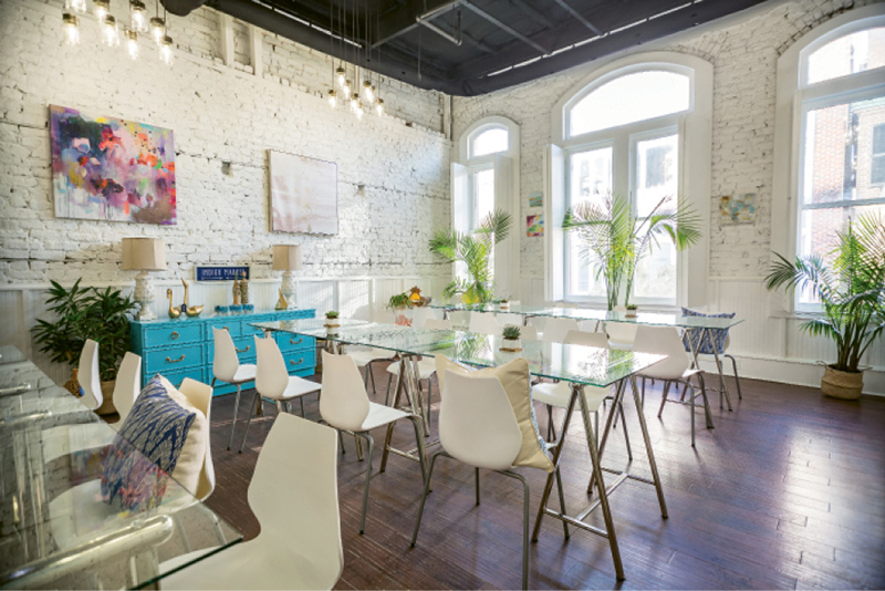 While the second-floor bar remains open to the public, all shopping now takes place on the ground level, leaving Upstairs a haven for productivity and collaboration. “The Skinny Dip is a collective of brands run by dynamic entrepreneurs,” says Sara Rossi, who co-owns the company with Taylor Ivey. “As brand owners ourselves, it’s important to us to support small business owners and creatives. Upstairs is a natural extension of what we already do downstairs.”