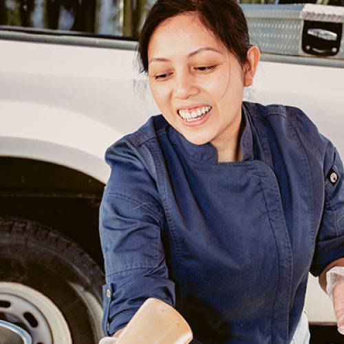 Durant launched Scram in 2017, inspiring Wong to begin her own mobile business a year later, but their admiration is mutual. “Cynthia made me feel it was okay to want more for my family and myself than my career,” shares Durant. “If it weren’t for her, I wouldn’t be here today.” It’s not all roses—there are dead generators and blazing summers in cramped trucks but also flexible hours, time with family, and full creative control. “For some women, success is a pie, and you need to get your slice of it. I don’t think that’s true,” says Wong. “I enjoy what I do, but I’m not going to die for my art.”