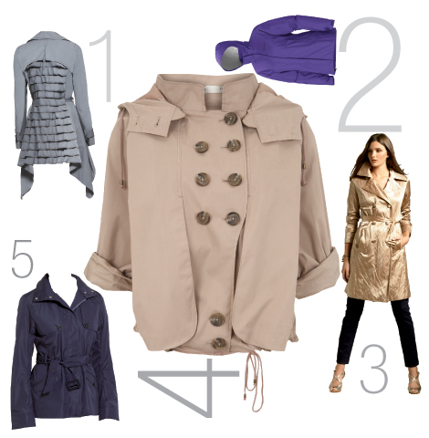 1. Hipster: The “Ophelia” trench in “pewter” offers all the romantic beauty of its namesake drama queen, none of her waterlogged ending. $348 at BCBG