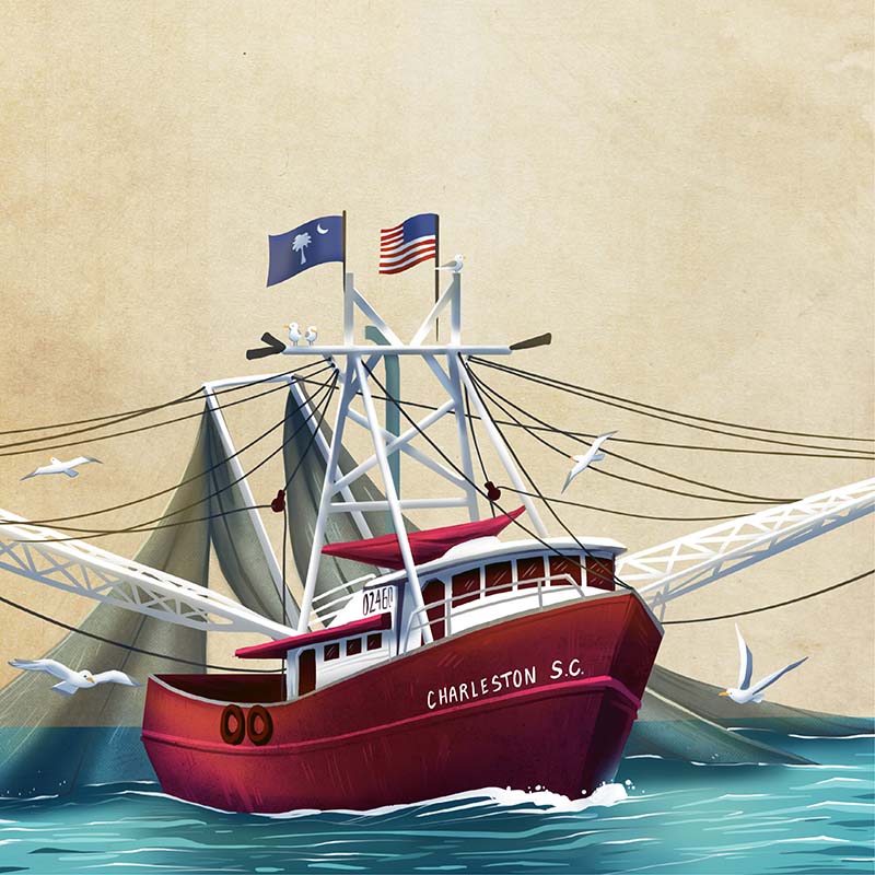 From Edisto and Beaufort to McClellanville and Georgetown, each morning during shrimp season the air fills with the deep-dieseled rumble of these hard-working boats as they head out to sea for a long day of trawling. This is a tough, take-it-on-the-chin, often thankless profession beset with pitfalls—bad weather, engine problems, the breakdown of a $5 part or worse: a torn net. Yet thanks to them we enjoy a ready supply of one of the most delectable items found in Lowcountry cuisine—sweet, delicate, just-caught shrimp straight from the docks