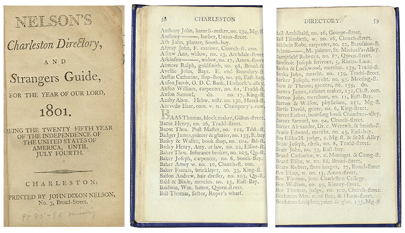Nelson’s Charleston Directory, and Strangers Guide for 1801