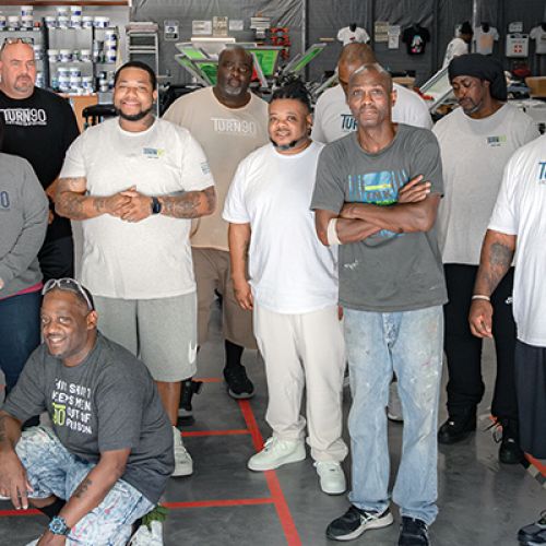 With hands-on training in screen printing, embroidery, and kit assembly, participants are paid an hourly wage while preparing them for success with future employment. When companies source products, such as T-shirts, from Turn90, they’re supporting both community and workforce development.