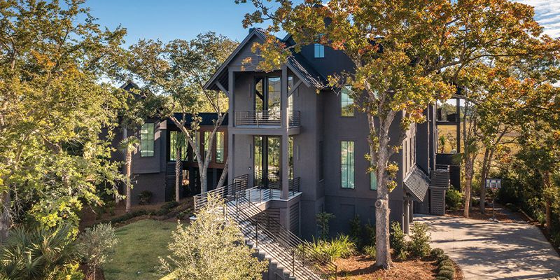 The home is expertly designed to blend in with its surroundings while offering spectacular marshfront views