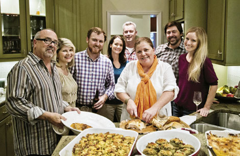 Coming to the table with plates piled high, the group of renowned culinary talents raises its glasses. “May each and every one of us be grateful for the gifts we have every day of the year,” Mickey blesses. “Thank you for all the giving back that we do together.”