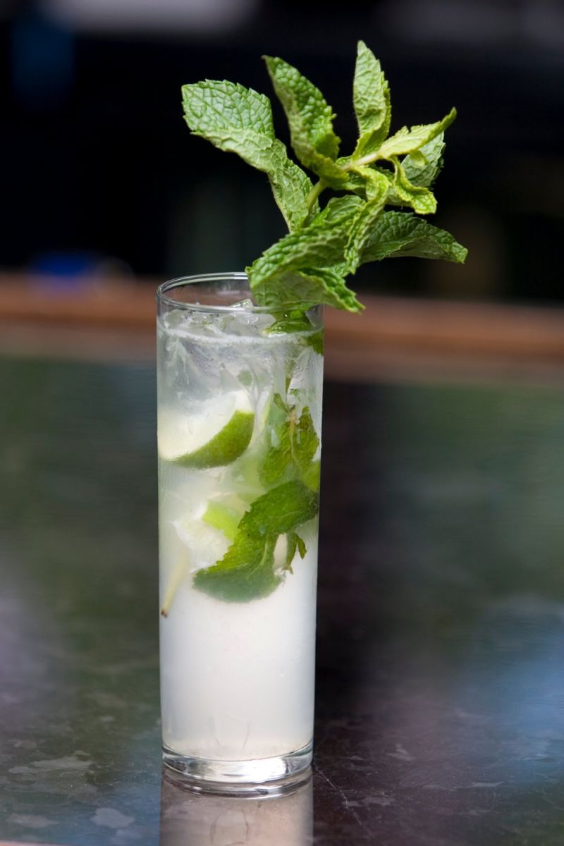 Muddle 1 lime wedge, mint, and cinnamon infused simple syrup.