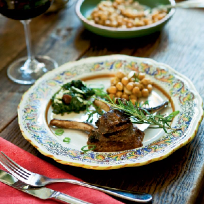 Spoon puréed vegetables onto plate and arrange chops on top. Serve immediately.