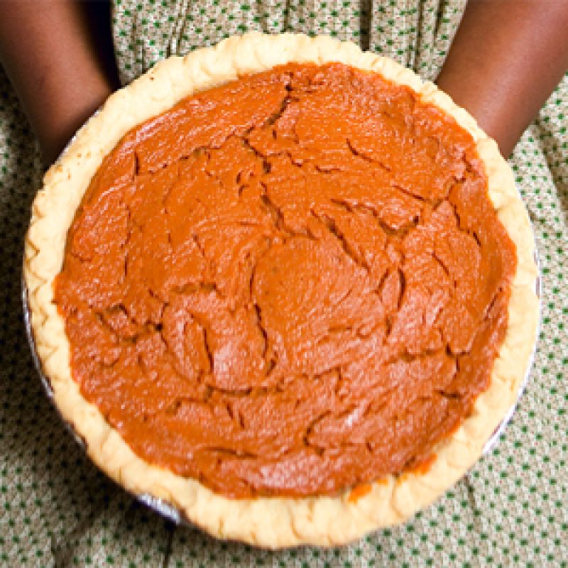 Preheat oven to 350°F. Beat together sweet potatoes, eggs, vanilla, and lemon juice. Combine flour, sugars, spices, and orange zest, and beat into potatoes. The mixture should be uniform. Pour filling in pie crust. Bake in preheated oven for 35 minutes.