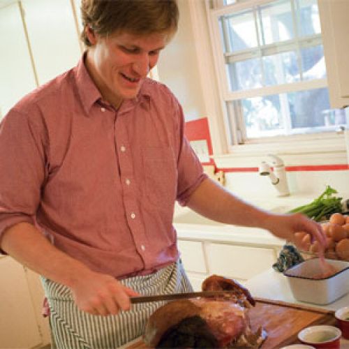 Place the seasoned meat (fat side up) on the grate in the center of grill. Place cover on grill and open ventilation holes. Add additional hot charcoal with shovel when the temperature falls to 220°F. Add additional wood chunks for two hours.