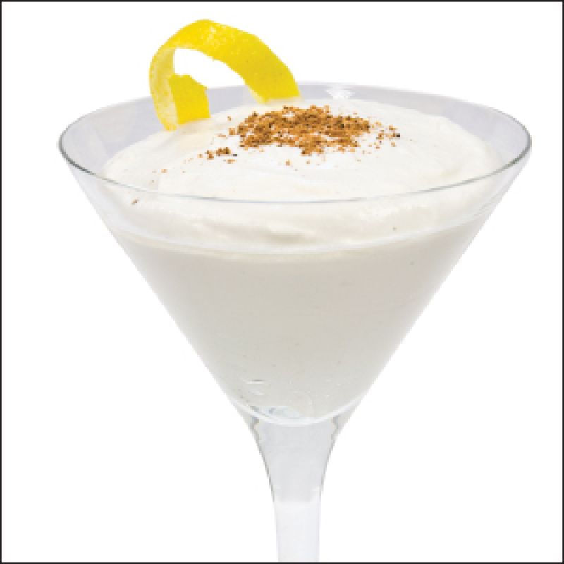 Remove the zest from the lemon in one or two pieces using a vegetable peeler. Cut the lemon in half and juice it through a strainer into a large bowl. Add the wine and zest, then the sugar and nutmeg (if desired). Let steep at least half an hour. Remove the zest, stir in the cream, and whip with a whisk or electric mixer until it holds firm peaks. Spoon into parfait, sherbet, or martini glasses. Serve cool or cold.