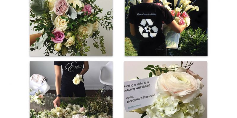 Sarah Bella Slagsvol and rEvent volunteers gather flowers from weddings and events; rearrange them into “bedside bouquets”; and deliver them to hospitals, shelters, and more.