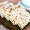 First out of the oven is a kumquat coffee cake, which Durant describes as a “soft buttery cake with a sticky streusel topping studded with fruit,” perfect for a chilly morning treat or alongside a late-afternoon mug of tea. The chef’s professional training peeks through, as the butter is browned and the cake is served inverted, displaying the kumquat slices on top—reminiscent of a classic tarte tatin.