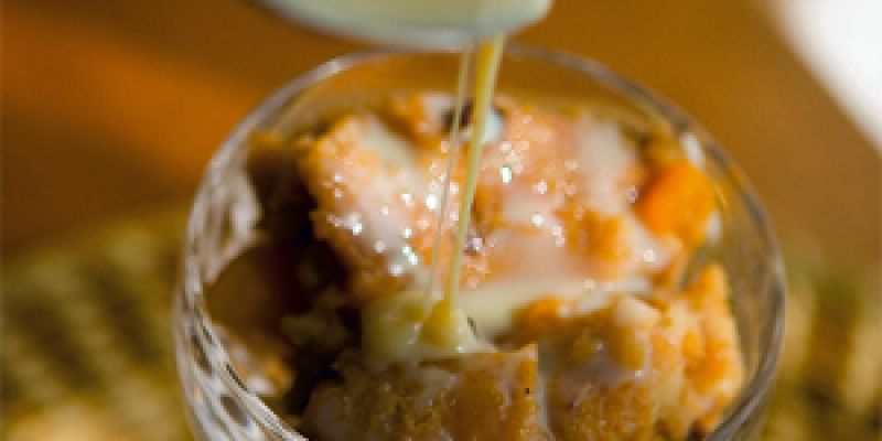 Pumpkin Bread Pudding with Maple Syrup Sauce