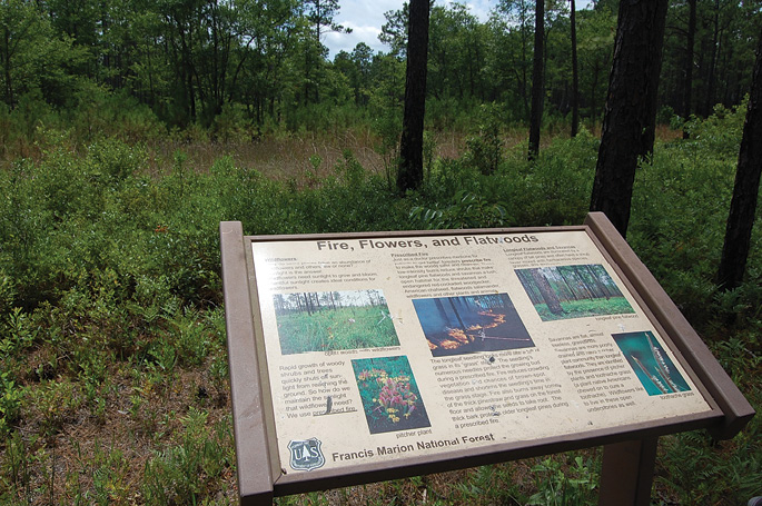 You don’t have to drive to the mountains for an overnight backpacking trip. The Palmetto Trail’s Swamp Fox Passage runs 48 miles through the heart of the Francis Marion National Forest, passing Carolina bays, crossing creeks, and winding through tall stands of longleaf pine.