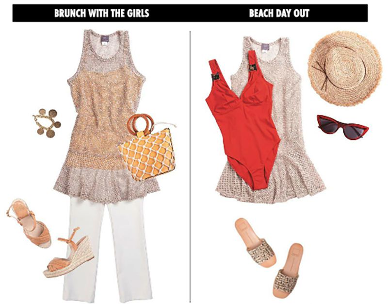 A crochet cover-up doesn't have to be just for the beach. Take the look from the surf to a Sunday Funday brunch with a cami, pants, and sandals.