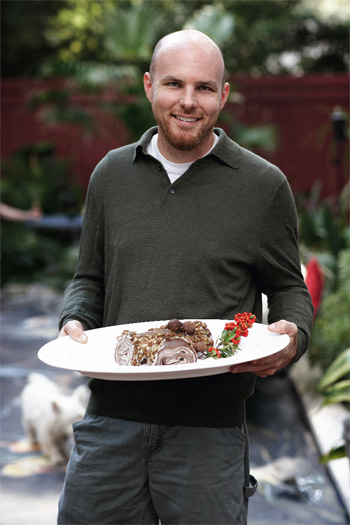 Artist and consummate entertainer Christophe Drumain welcomes family and friends to New Year’s Day brunch in his Riverland Terrace garden, complete with all the fixings from his native France{Menu} Caviar-Stuffed Eggs Saffron Shrimp & Assorted Salads Venison, Duck, and Rabbit Pâtés Selection of Stuffed Dates & Prunes Convincing Christophe Drumain that “there’s nothing to eat” is a difficult task. Just ask his friends, who claim he can whip something up from even the most barren refrigerator. “My clients laugh because I’ll design their yards and end up cooking for them,” says the French-born Christophe. “I enjoy food, but even more so, I enjoy the sense of family that comes with cooking.” And it’s no wonder: the Bordeaux School of Architecture graduate grew up helping his mother organize dinner parties. “My father was in the French army, so we would often host parties with military officials, including some of the generals. This taught me that it’s so important to know how to entertain, how to make people feel comfortable.” Christophe happily carried these lessons with him to the States; following a post-graduate degree program at Harvard, for which he received a full scholarship, the architect-turned-landscape artist met Scott Parker, who had just opened master planning firm DesignWorks in Charleston. Now a partner in the company, Christophe has sketched out the details of thousands of exterior plans. As for his own Riverland Terrace backyard? In recent years, it’s become a palette for artistry of all kinds. “In Charleston, you can use your garden year-round, so you want to design a space that you can spend as much time in as possible,” says Christophe. For him, that means forgoing a traditional lawn in favor of pavers, glass, and painted concrete. “I don’t really have the time to clip or trim,” he says. That’s not to say the James Island resident isn’t willing to put in a little elbow grease—it’s just that artistic projects like garden murals are more his speed. “I painted a koi pond onto a concrete slab using alkaline outdoor paint,” he says of the rectangular garden alcove that formerly served as a parking space. “I had always wanted a real koi pond, but as a landscape designer, I know how much they cost and how hard they are to maintain.” So Christophe decided to paint what he couldn’t install. A nearby water-jug fountain “feeds” the faux pond, while a generous selection of papyrus and water plants, most salvaged from friends’ yards, completes the illusion. But again, Christophe’s garden artistry is only part of the story. With his mom and entertaining mentor, Catherine, visiting from France—her first trip to the United States since Christophe’s Harvard graduation—with his aunt, Micheline, Christophe readied his back garden for a festive New Year’s Day brunch. The trio combined their traditional French flavors with his friends’ offerings to create a feast of pâtés, dried fruits, and even a vegan Yule log. “It’s about a great diversity of food eaten in only small amounts,” he says, pointing to his friend Ken Immer of vegan culinary outfit OM Cooking. “I could take on everything on my own, but Ken is educated in French cooking, so he mixes his good, raw foods with these cooking methods. It’s all about the exchange of talent and ideas.” Christophe notes too that as large a role as food always plays, it’s never the main event. “The French love to feed people,” he says, “but it’s really about the social element that goes with it. You never remember what you wore or even what you ate, but you remember the experience forever. The best laugh I ever had was in the kitchen with my aunt and my mother. We were dropping dishes and falling on the floor laughing,” he says, “That’s what I’ll remember most, and that’s why you remember the way food smelled as a child for the rest of your life.” In France, explains Christophe, you can tell that people are from the same family when they sing the same tunes and cook the same recipes. “Food links me to my roots,” explains Christophe. “It’s the roots of who you are. You may lose a language, but you never lose those ties to family and food, and it’s an amazing experience to share that with friends.”
