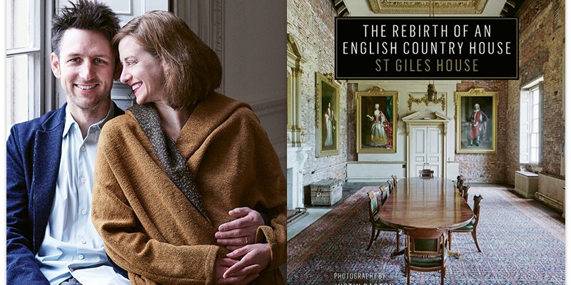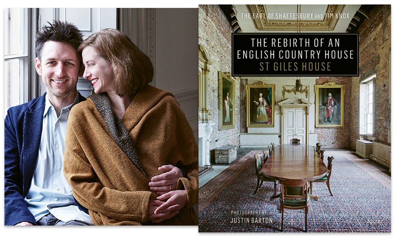 (Left) Nicholas Ashley-Cooper, 12th Earl of Shaftesbury, with his wife, Dinah, at St. Giles House; (Right) Rebirth of an English Country House: St Giles House by The Earl of Shaftesbury & Tim Knox
