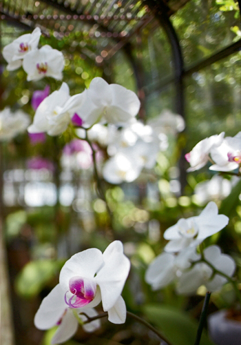 About 20 years ago, Ferguson indulged his fancy, purchasing a kit from Carter and Holmes, a prominent Upstate orchid grower that represents Under Glass greenhouses. Though he feared the bloom would fall off the rose and he’d start to use it “for storing old tires and such,” Ferguson says the passion only grew. After experimenting with house plants and even vegetables, he narrowed his focus to orchids. “They are amazing plants and have been sufficiently interesting that no old tires are in there.”