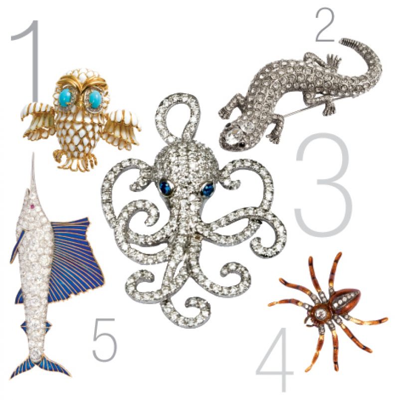 5. Earn bragging rights with the one that didn’t get away: a vintage sailfish brooch featuring a cabochon ruby eye swimming in diamonds and plique-a-jour enameling. $19,000 at Croghan’s Jewel Box