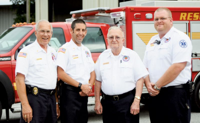 Man Power: (Left to right) Assistant chiefs Lamar Watkins and Trae Wright, chief Bobby Herbert, and deputy chief Brian Hinton head up the squad, which Herbert helped found in 1962—he’s on the far left in a photo that ran in an area newspaper that year (top).