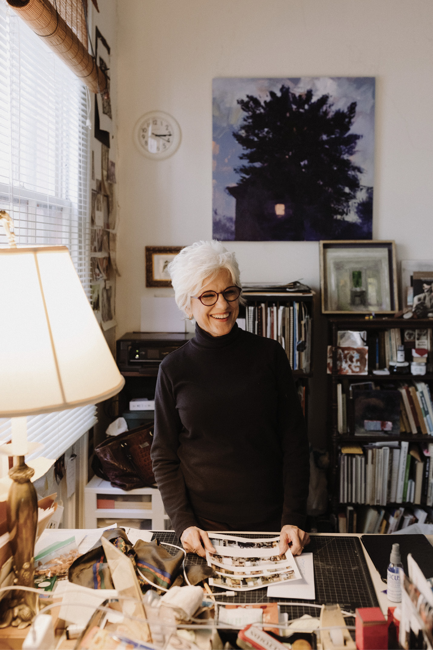 A vase of yellow tulips graces the mantel, stems of sunny cheer taking the edge off the late autumn chill. Classical music plays as sunlight dapples through the big windows. Fantuzzo’s studio is alive with creative wattage—whimsical assemblages of photos, books, paintings, and whatnots congregate on various surfaces. There’s art pretty much everywhere, tucked into nooks in closets and a warren of storage rooms. “I need lots of stuff around me—it fuels ideas for new work,” says the veteran Charleston artist, who brings her own energy to the Bull Street mix as well as a tireless compulsion to see things anew.