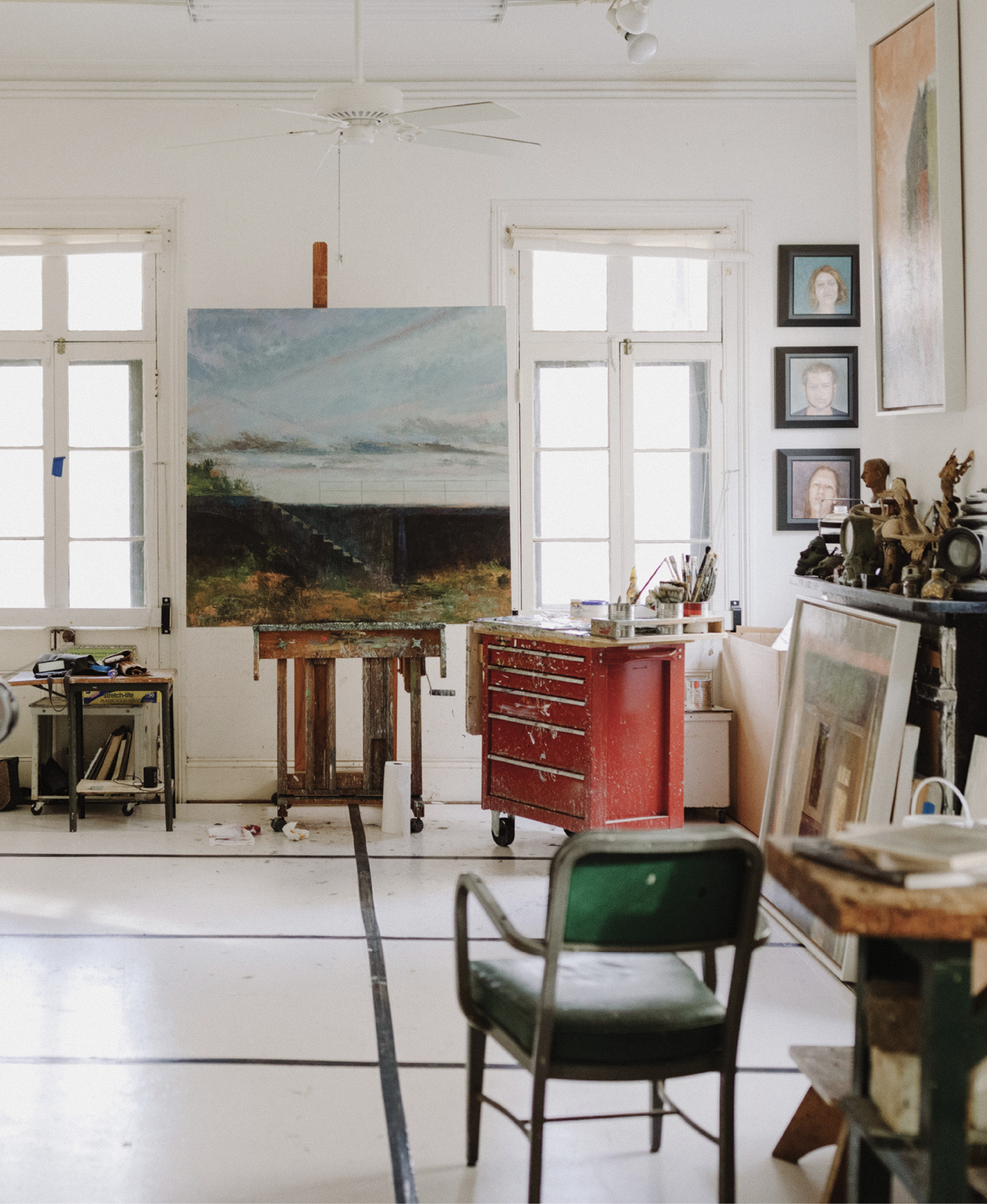 Mary Walker is another longtime friend who also once shared a studio with Fantuzzo, and the two often meet to critique each other’s work and bounce ideas off one another. “Coming from a bigger city like Philadelphia, there was always a sense of competition. In Charleston, it’s small, and from my earliest days here, we all encouraged one another. It was a positive atmosphere in which to grow,” says Fantuzzo, who lived and studied in Philadelphia before meeting her husband, Ed Warmuth, one summer in New Jersey.