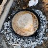 (Left) Chef Dennis’s family and friends at Joseph Fields;  (Right) Chef BJ Dennis seasons black drum before cooking them over coals at Joseph Fields Farm on John’s Island.
