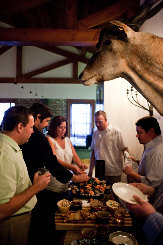 The top toques of the Charleston food scene share a fellowship that folks from “Off,” accustomed to a more intense industry rivalry, sometimes find surprising. It is this sense of community, however, that has nourished the city’s rapid transition into a culinary destination. On this evening’s guest list: Donald Barickman (Magnolias), Ben Berryhill (Red Drum), Sean Brock (McCrady’s), Marc Collins (Circa 1886), Craig Deihl (Cypress), Mike Lata (FIG), Frank Lee (SNOB), Brett McKee (Oak), Eddie Moran (Mercato), Robert Stehling (Hominy Grill), and Michelle Weaver (Charleston Place)