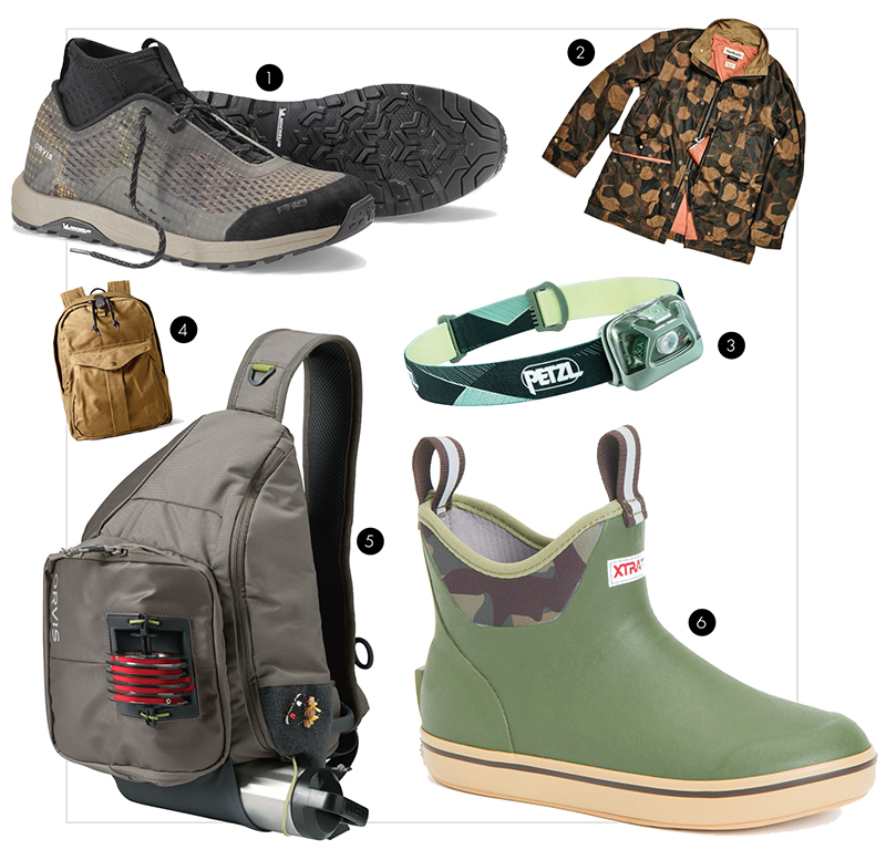 1. Orvis ”Pro Approach” multi-purpose shoe in camouflage with integrated Ariaprene socks and Michelin Outdoor Extreme outsole, $149 at Orvis