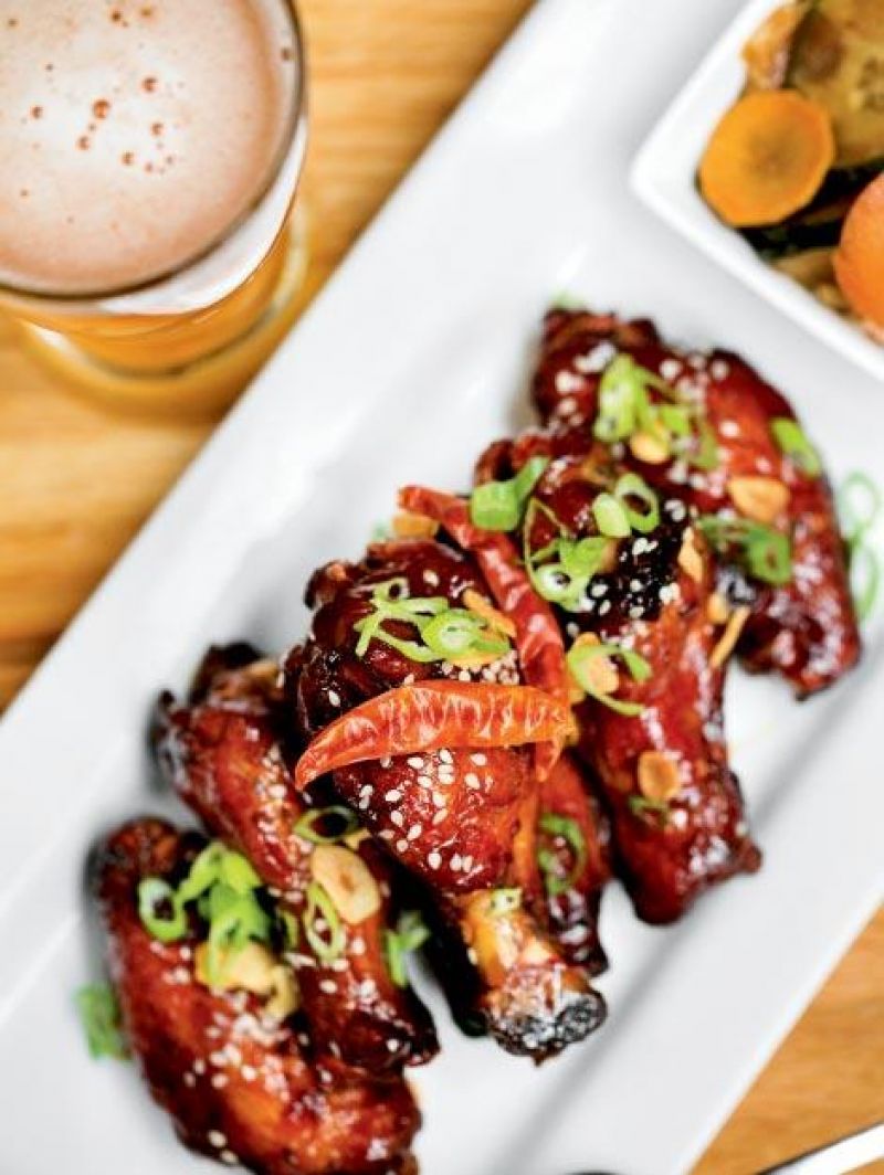 A dual-section menu offers regular items and a daily selection of dishes. The “bar classics” list maintains the soon-to-be-famous and highly addictive General Tso’s chicken wings. When not overly salted, they present a perfect lacquered glaze with just a bit of red chili spice and enough syrupy stickiness to haunt your fingernails for days. People rave about the “Crunchy Dame”—a tempting stack of dry toast, pork belly, and cherry jam topped with a fried egg, but when I sampled it, it was rather bland. There’s a somewhat forgettable pâté, but the pickled beets and crunchy apple served alongside are enough of a revelation that they could easily stand on their own.