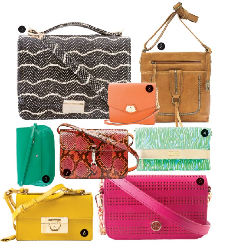 1. Lauren Merkin watersnake skin-embossed calfskin ”Taylor” with optional cross-body strap, $295 at MOSA Boutique