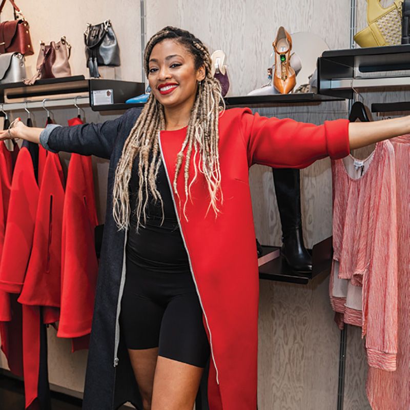 “Women should wear capes,” the designer, stylist, and Charleston native declares, referring to her fall 2020 collection, which features the elevated outerwear, as well as her perspective that women are smart, multitasking warriors whose wardrobes should make a bold statement. The Savannah College of Art & Design fashion grad, who honed her skills as a stylist for Ralph Lauren in New York and later as a product manager and technical designer in Los Angeles, returned to the Holy City to start her brand, Aysha louise, which launched in September 2019. Here, she talks about her “edgy-yet-sophisticated” style and enjoying the holidays
