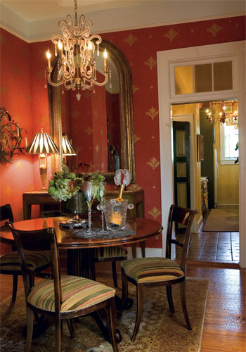 You don’t have to rip everything out to make a space look completely refreshed,” says interior designer Caroline deVlaming. For years she applied this rule of thumb to her clients’ homes, but when the time came to rehabilitate her own condominium in a circa-1842 house in Harleston Village, she had no choice but to follow the same creative code. “I had to work under considerable constraints—many of my changes needed to be completely aesthetic,” deVlaming says, adding that the building is considered historically significant. The three-story house at the corner of Rutledge Avenue and Bull Street was purchased in 1857 by Eugene Joseph Huchet, a cotton trader and French immigrant purportedly descended from European nobility. It remained the family’s home until the 1931 death of Huchet’s daughter, Noemi Elizabeth Huchet, who claimed to be “the only countess living in South Carolina.” The Huchet home changed hands during the ensuing half-century before being divided into six private units in the early 1980s. Each boasts high ceilings, generous natural light, and original hardwood floors. Wary of doing too much too soon, deVlaming opted to live in the unit for a year before making any changes. Just three months later, though, she moved out and called in contractor Christopher Gadsden. “I think it was a water leak that started the whole thing,” recalls Gadsden, who was faced with the challenge of making over the condo’s single bathroom without exacerbating a leftover plumbing glitch. “The room had a four-by-two-foot hole in the tile, through the concrete, and down to the original pipes,” says deVlaming. “It was a head-to-toe job, literally down to the studs.” Because of the plumbing constraints, explains Gadsden, “the shape of the room stayed pretty much the same.” This prohibited the removal of the cast-iron tub, but the remaining fixtures were replaced and the floor sealed and retiled in marble. Though deVlaming had originally planned to leave the plaster ceiling as it was, Gadsden had to replace it with Sheetrock when the plaster caved in. Cracked subway tiles were traded for white beadboard along the bottom half of the walls, the upper portions hung with Sheetrock and painted. The linen closet opened into the hallway, perhaps originally to house a dumbwaiter, so Gadsden moved the door inside the bathroom. Once this phase was complete, deVlaming turned her attention to the galley kitchen, made even smaller by the guest-room closet that jutted into it. Removing the closet freed up enough space to create a cozy, two-person dining nook. A tabletop, crafted by the designer’s father, is bolted into the wall and pairs with bench seats crafted from an old church pew. “When I lived here alone for three years, I didn’t want to sit at the dining room table everyday,” she says. “This one little change made the most dramatic difference.” She went on to replace the gray Formica countertops with pale marble and swapped plain white plywood cabinets for spacious, vanilla- and moss-colored wooden cupboards with seeded glass. By extending the new cabinets up along the full height of the walls, she created much-needed storage space. Smaller-scale changes involved covering cracking plaster with Sheetrock, adding molding, and installing new light fixtures. A new palette of warm, rich colors, including golden yellow, deep red, and soft green, mix with strategically placed mirrors to create a cozy yet light-filled atmosphere. Cascading curtains and colorful ceilings emphasize the tall windows and the airy feel of the otherwise compact rooms. “My goal was to make this perfectly personalized for me. I had to work within a lot of constraints that I wouldn’t normally have to, but I think that’s what made it the most interesting design challenge I’ve had yet.”