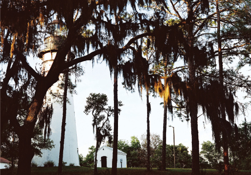 There are some interesting sights along the way. The black-and-white Amelia Island Lighthouse set up on a hill can be seen from the causeway. And the maritime forest gives lots of shade to the winding roads at the Fort Clinch State Park, where visitors can ride mountain bikes or hike on forest trails, camp on a wild beach with tall dunes, fish from a half-mile-long pier, or check out the brick walls and beachfront cannons of the Civil War-era Fort Clinch.