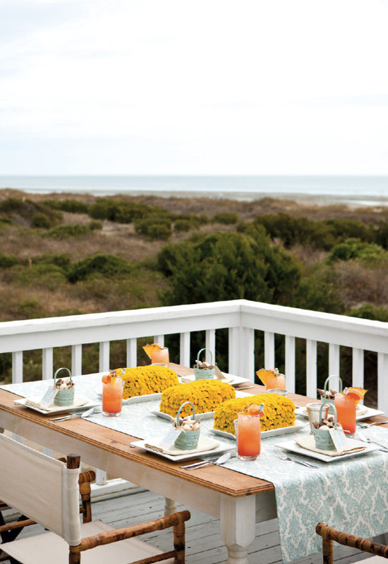Let our dynamite views do the entertaining for you—we settled into the back deck of a friend’s beach house on Sullivan’s Island to whip up this laid-back soirée but any accommodating deck or patio will do.