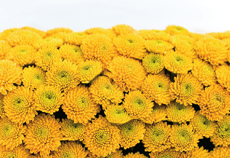 All you need to fashion these centerpieces are three large blocks of floral foam and three or four bunches of button mums. Soak the foam in water for two hours and cut the flower stems to about three inches. Insert stems into foam until covered completely.  (Note: These can be made up to five days ahead of time.)