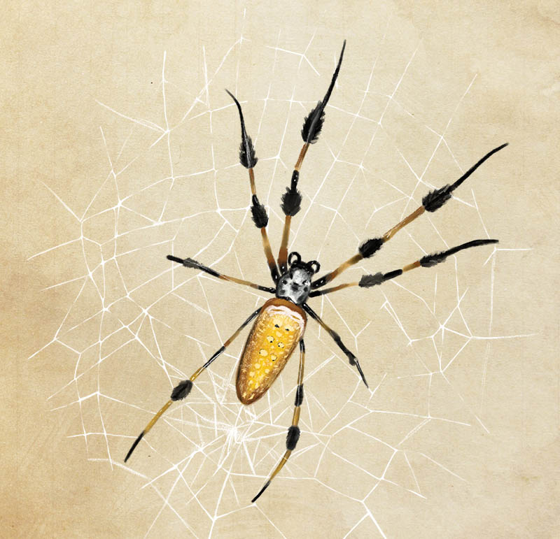 ORIGINAL SPIN - The Latin name, Nephila clavipes, means ”fond of spinning,” and the unique webs these spiders weave are incredibly intricate, often woven in artistic patterns that give rise to the name “writing spider.” Moreover, the silk is five times stronger than steel and tough enough to withstand a gale. Building and repairing the web is a constant process, with adult spiders continuously destroying and rebuilding portions of the web on a daily basis.