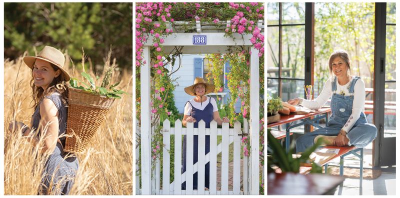 Photographs by (Background) Floral Deco, (The Gardeners Green-2) Brennan Wesley; (portraits-2) Alice Keeney & Courtesy of (Framed works) A Whisp of Time; (Foraging) Wild Herb Academy; Brennan Wesley; (DIY arrangement) Adrianna Davis; (Portrait & Juice) Alice Keeney; Courtesy of April Punsalan; courtesy of (Hammered flower prints-2) A Whisp of Time; Adrianna Davis; & Alice Keeney
