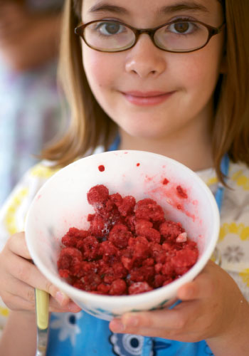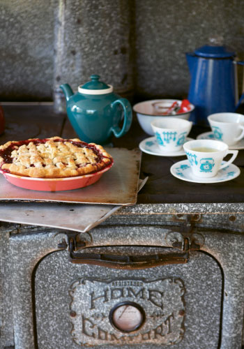 After an alfresco breakfast, our first stop was Slow Food board member Barbara Swell’s East Asheville log cabin for a class in “The Lost Art of Pie Making.” In a cozy kitchen complete with an iron woodstove, we sipped cider and hot tea while Barbara conducted a pie dough demo. Donning vintage aprons, the girls each made mini berry pies with plenty of finger licking and flour flying. Colesy especially had been looking forward to the lesson, as she bakes at home. “Mrs. Barbara made making pie dough sound easier than it was,” she confided, “but after I got the hang of it, it was awesome—and the pie was delicious!” At a picnic table, we lunched on sandwiches from Greenlife, devoured the divine “blapple” (blueberry-apple) pie (recipe on page 99) that Barbara baked before we arrived, and chatted about the old-fashioned cuisine featured in her Log Cabin cookbooks and classes.