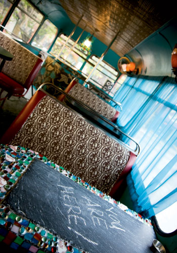 We perused the Grove Arcade food shops as well as the farm and craft goods in the Portico Market’s outdoor stalls. Then a brisk walk down to Biltmore Avenue took us to the Double Decker Coffee Company. Housed in an authentic English bus, it offered locally roasted caffeine for the adults and a make-believe bus trip for the girls, who scampered up top to “drive.” On our way back, we hit South Lexington and Jael and Dan Rattigan’s fabulously famous French Broad Chocolate Lounge. The cognoscenti’s choice for artisan chocolates, it also features wines, locally brewed beers and roasted coffees, and to-die-for pastries. We selected an eye-popping assortment of handcrafted chocolates for after dinner.