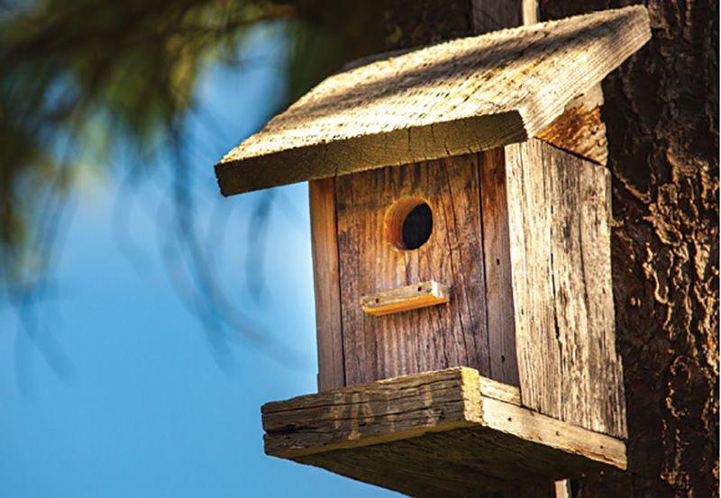 TIP: Here come the lovebirds! Backyard species will soon begin building nests, so ready their accommodations. First, tap on the house and listen for activity, then shine a flashlight inside to check for eggs or chicks. Take the structure apart and remove any old nesting materials. Scrub all over with a solution of one part bleach to nine parts water. Rinse well and let the abode dry before you reassemble.