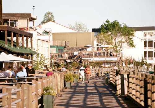Front Street’s good for that, too. Local standbys the Rice Paddy and the River Room have been serving seafood since the 1980s. (You can go to both and do a crab cake tour, as each serves them as a specialty.) Newer additions include the just-opened Italian restaurant Portofino’s and Aunny’s Country Kitchen, offering soul food like fish and grits for breakfast and fried chicken and butter beans for lunch and supper.