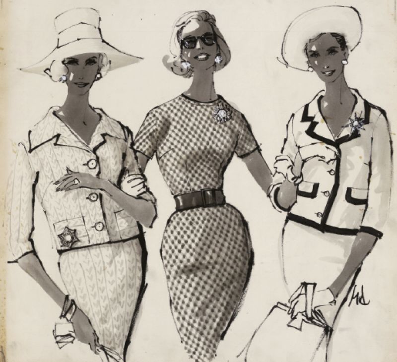 It was the era of Grace Kelly and Elizabeth Taylor. Pearls, hats, skirts, and heels dominated fashion, and “you didn’t think of going out without your white gloves,” remembers Patricia “Pat” McCullough Stevenson, who worked as a fashion illustrator for B. Altman from 1954 to 1961.