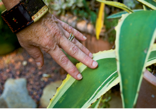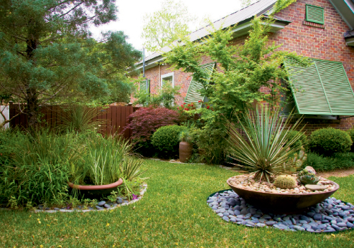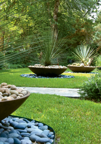 And this latest addition to the landscape does reflect a sense of enlightenment—peace, even—that its designer has achieved after a quarter-century of playing in the dirt. “I’ve finally learned to choose plants that can handle our heat and humidity, and I made them the focal point with the succulent garden. It hardly needs watering, and all I have to do is pluck weeds from the river rocks occasionally, making it far easier than any other ground cover,” says Amelia.