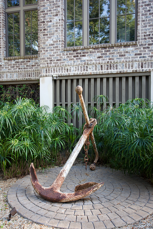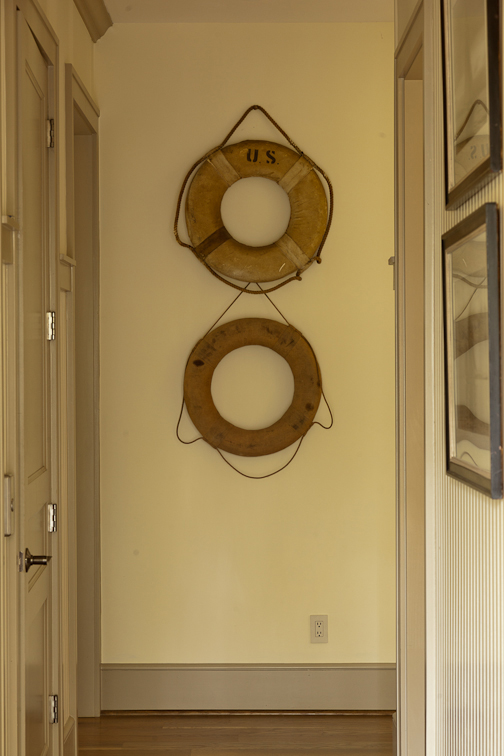 When Becky Hollingsworth and longtime partner Deedie Cooper began dreaming up designs for a home inspired by Charleston’s rich history, they didn’t go the predictable row-house route. Instead, the creative retirees took their architectural cues from the 19th-century cotton warehouses that dot the peninsula. Boasting high ceilings, exposed brick walls, and industrial ironwork, these historical beauties sprung up to support the city’s then-booming cotton trade; many have since been retrofitted into rustic-cool hotels, condos, and restaurants. “We loved the idea of incorporating those industrial elements to make it feel like a working man’s house,” Cooper explains. Add to that décor that draws from Hollingsworth’s collection of vintage maritime memorabilia (sailor’s uniforms, centuries-old life preservers, Navy flags, you name it), and a clear vision of their dream coastal abode began to take shape.
