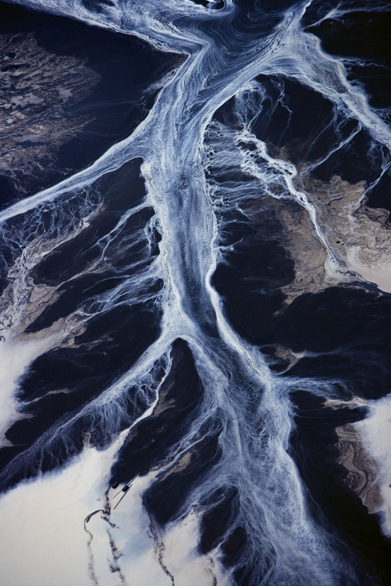 The scarred landscapes showcased in his aerial photographs introduce disturbing realities to viewers, but the abstract scenes also appear quite