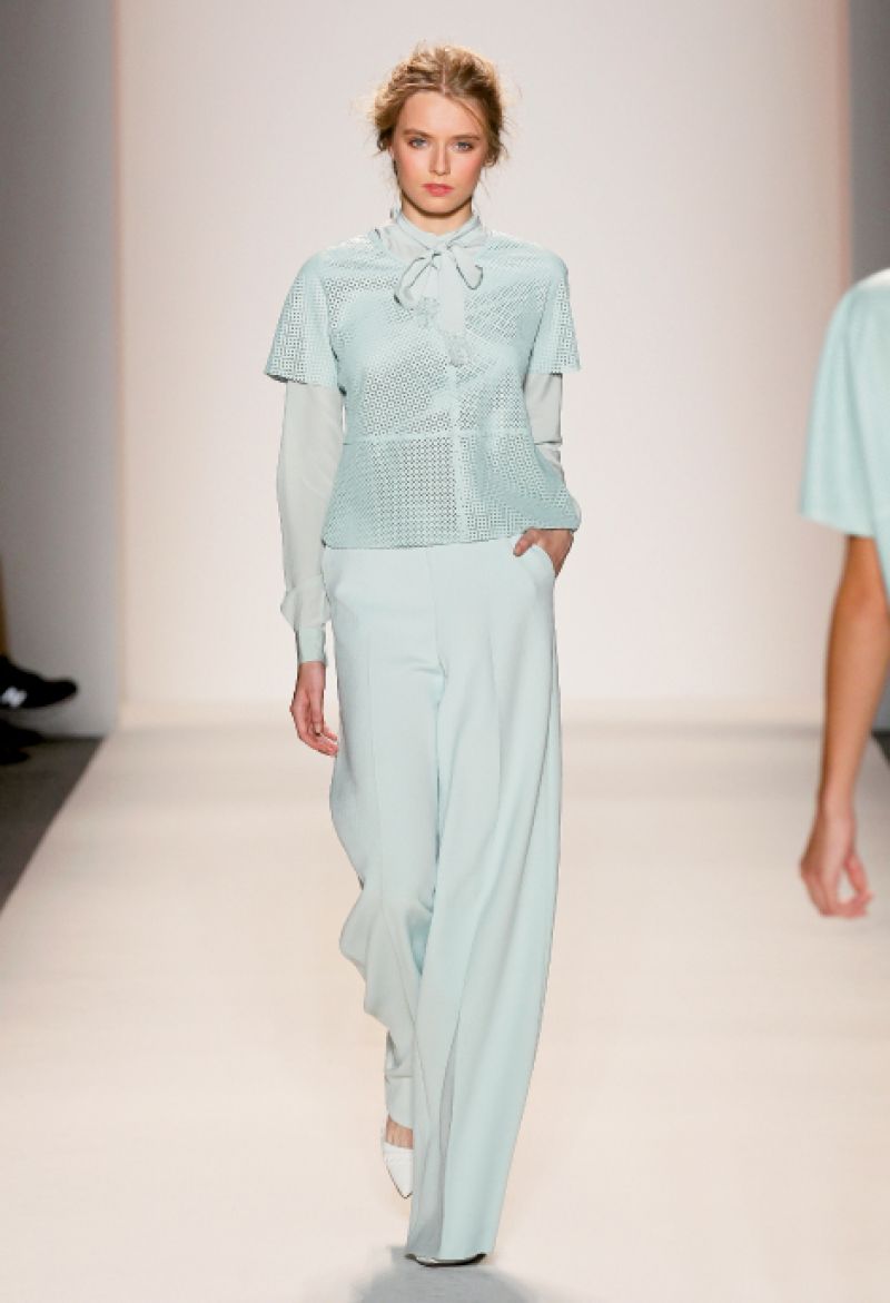 “These are a nice break from the form-fitting, skinny pants craze but look best on taller women with longer torsos. You can pair every heel height with these pants, but this season, my favorite shoe to see them worn with is the strong-heeled, ankle-wrap sandal.”