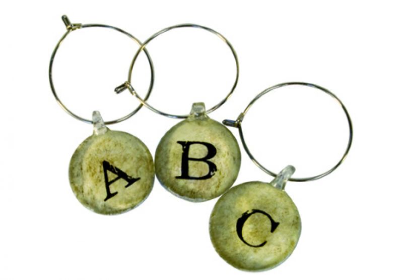 2. {Hipster} Pairing cool typography and vintage patina, this set of 26 wine charms gives artful alphabetical order to bashes big and small. $29 at Pottery Barn