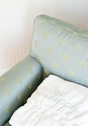 And less-showy is the Brickmans’ specialty. “It’s a slipcover house,” explains Tippy. “We wanted it to be easy and calming, something that wasn’t fussy. We wanted our nephews and nieces to be able to play here, get sand on stuff, and not worry if things were spilled. I can throw the slipcovers into the wash, and I can stand on the furniture, like the dining room table, for example, when I need to put fish in the chandelier.”
