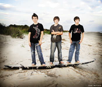 Why do passersby stop and stare when The 3 Dudes—a band the Ploch siblings formed back in 2007, Jonas Brothers-style—play at the Windjammer, Red’s Icehouse, or Blackbeard’s Cove Teen Night? Perhaps it’s lead guitarist Jack’s shreddin’ solo when the trio covers The White Stripes’ “Seven Nation Army.” Or maybe it’s bassist Sam’s trademark fedora or drummer Roger’s mohawk, which makes an appearance for special occasions, that catches their attention. Most likely, it’s that at 11 years old, twins Jack and Roger just hit middle school, and Sam, whom the family jokingly calls “the spare,” is merely nine. Easily the youngest band on the Charleston music scene, The 3 Dudes have already snared the attention of local fans. “At our concerts, people regularly pull out their camera phones,” says Roger. “It’s funny to see how big their eyes get.”