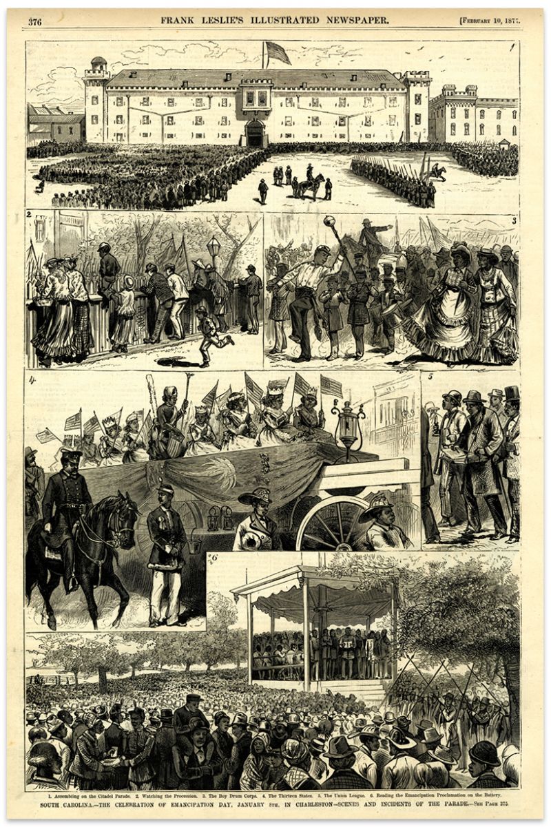 The Emancipation Proclamation, which declared “all persons held as slaves...are and henceforth shall be free,” was issued on January 1, 1863. Since 1865, a parade to celebrate has been a Charleston tradition. Early on, newly freed men and women, unions, and church and civic groups marched with Black military troops who had secured their freedom.